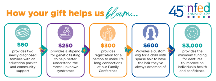 Donations allow the NFED to support more families and raise more awareness about the ectodermal dysplasia syndromes. Your tax-deductible gift is making our programs possible — advancing research, treatment, education, advocacy, and more.